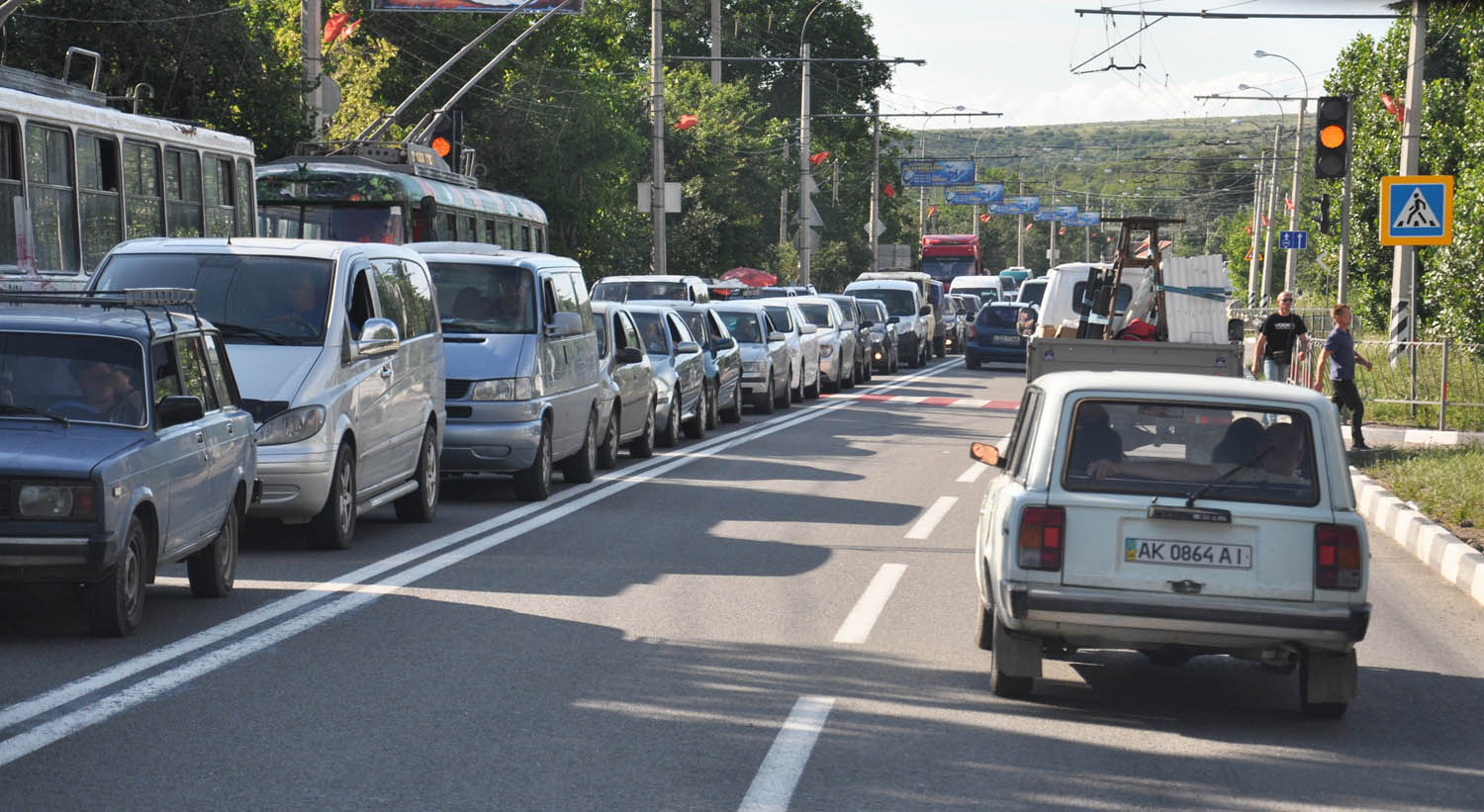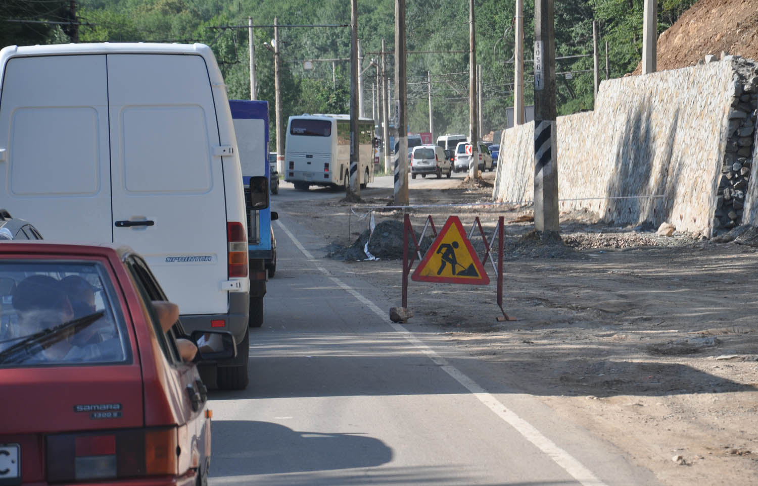 На одном из отрезков дороги идет укладка асфальта. При этом спешащие на море или же на вокзал или в аэропорт автомобилисты создают аварийные ситуации.