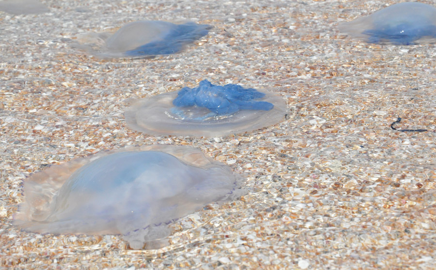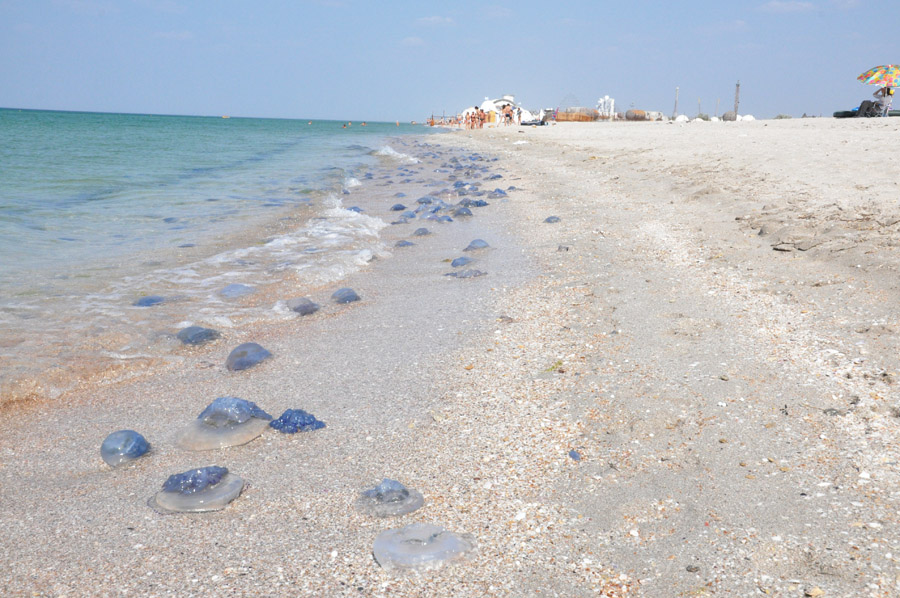 На западном побережье Крыма наблюдается большое количество крупных синих и фиолетовых медуз.