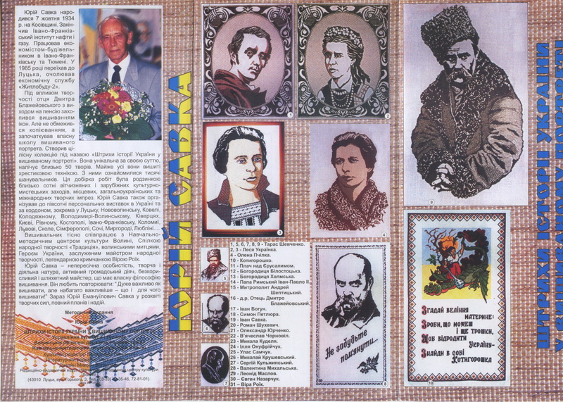В экспозиции будет представлен экспонат фондовой коллекции музея – портрет Тараса Шевченко работы украинского вышивальщика Юрия Савки. Портрет размером 55 см х 40 см выполнен в 2003 году в технике вышивки крестом.