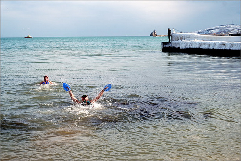 Напомним, в 7 января в Евпатории «моржи» открыли купальный сезон.