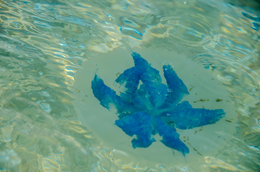 Медуз отличает крупный размер и синий цвет. Туристы жалуются, что были ужалены медузами, и поэтому с опаской заходят в море. «Первый раз вижу такое большое скопление медуз, причем чем дальше от берега, тем их больше. Случайно дотронулся до синих щупальцев одной медузы и почувствовал на руке неприятное жжение», – поделился отдыхающий Александр.