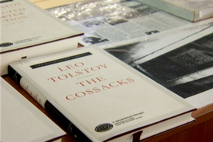Как рассказала ведущий библиотекарь читального зала Нина Белорусцева, экспозиция включает более 200 единиц хранения, среди них книги, журналы, газеты, открытки и фотографии. «Огромное наследие оставил Лев Николаевич нам, потомкам. Полное собрание его сочинений насчитывает 90 томов. В рубрике «Великое наследие» мы отразили наряду с современными изданиями писателя наш уникальный фонд – это его произведения, напечатанные в начале прошлого века – «Анна Каренина», «Война и мир», «Воскресение», драматические произведения, повести, рассказы», – отметила Нина Белорусцева.
