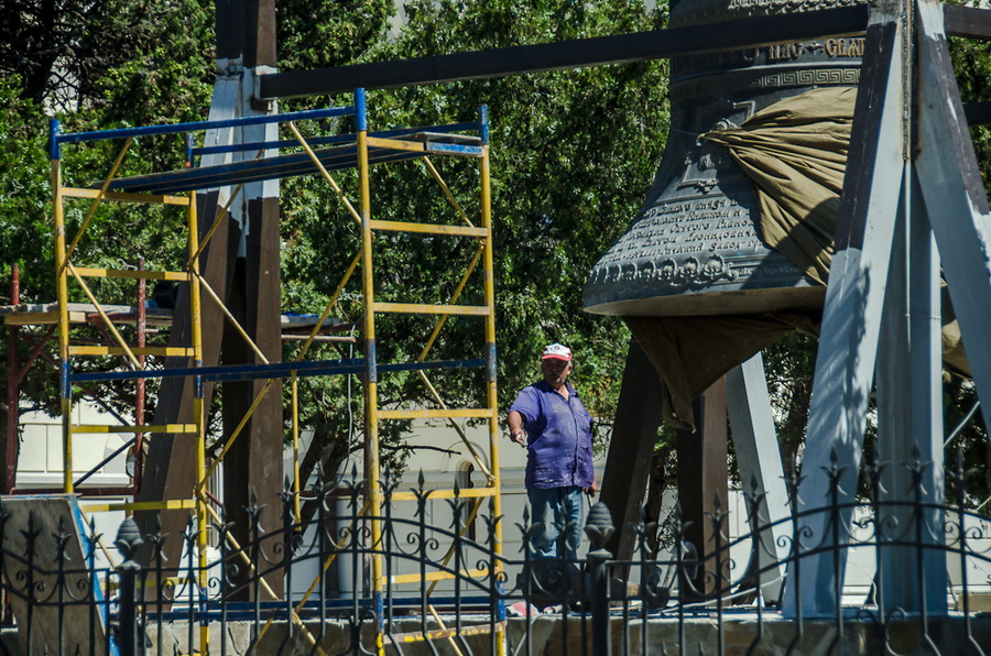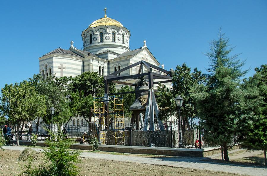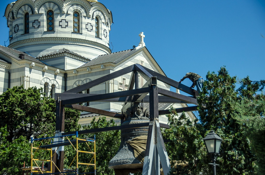 В Севастополе на территории Свято-Владимирского собора на Херсонесе проходит установка самого большого в Украине колокола.
