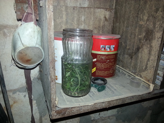 На момент обыска на территории дома находились еще два человека, у которых были изъяты газетные свертки с веществом серо-зеленого цвета растительного происхождения и характерным запахом конопли. Оба были под действием наркотических веществ.