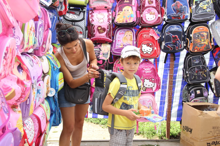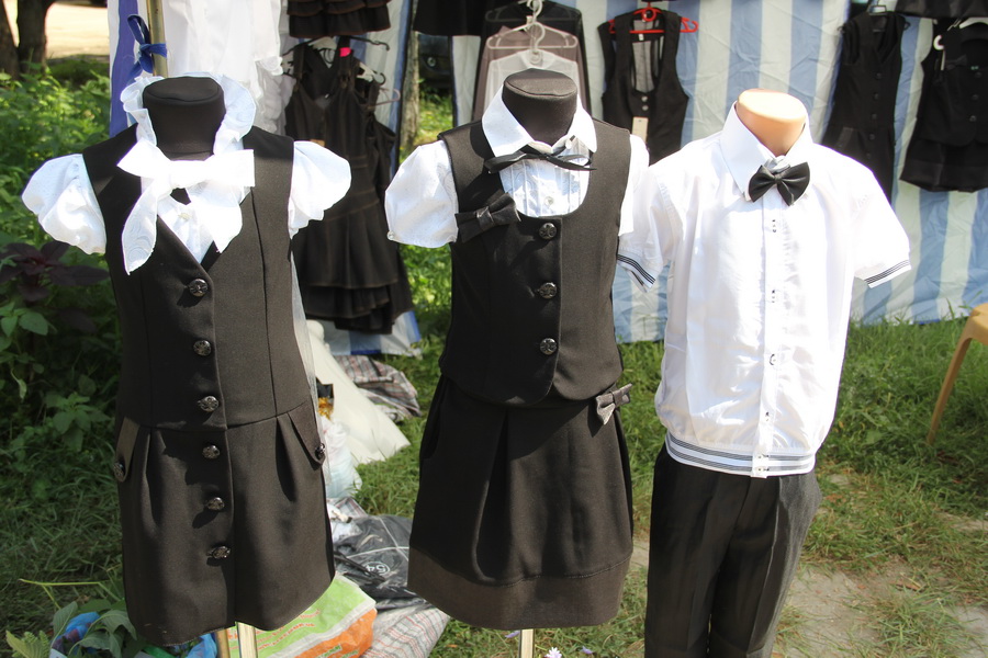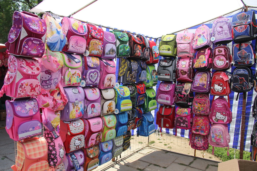 Все торговые места готовы к работе и ждут своих покупателей. На ярмарке представлены необходимые для учебы в школе товары – портфели, школьная форма, канцтовары, спортивная одежда и обувь.