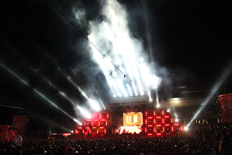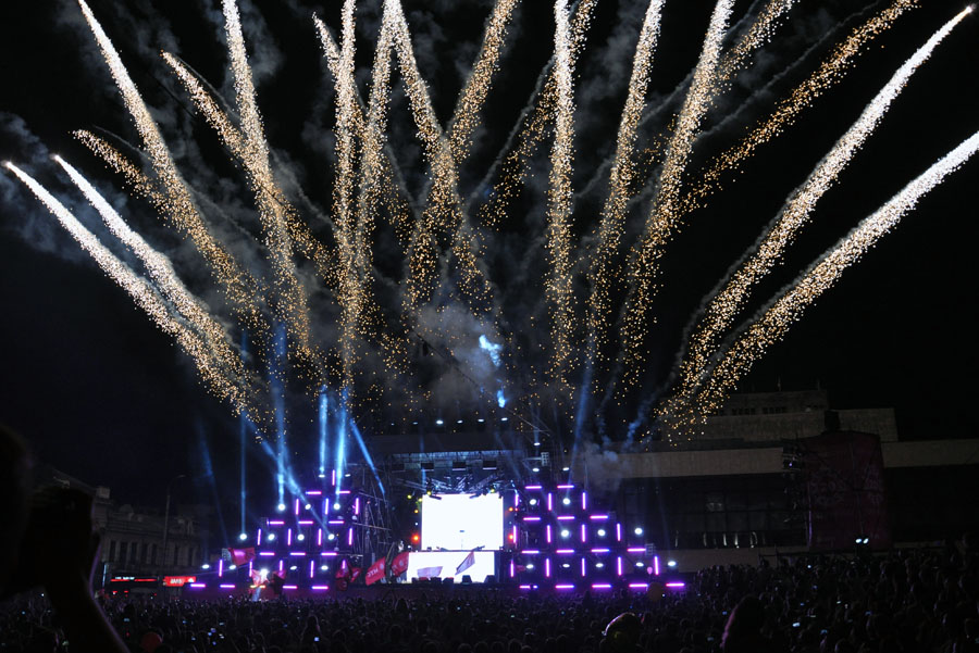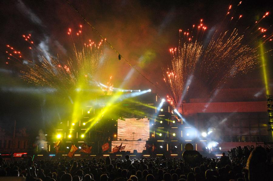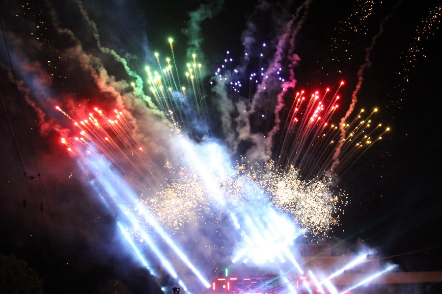 Главной особенностью праздника стало световое лазерное шоу, которое проецировалось с помостов сцены в небо. Световое шоу сопровождалось музыкой и взрывами пиротехники.