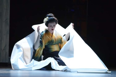 Особенностью спектакля является то, что, согласно режиссерской задумке, на сцене не используется речь, только японская музыка и язык тела.