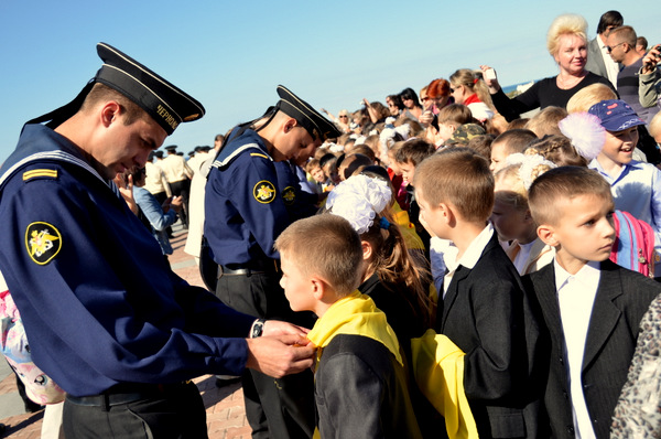 СПРАВКА. Посвящение в «севастопольцы» ежегодно организует Союз детских организаций города. По сценарию, школьникам напоминают о героической истории Севастополя, дети возлагают цветы к памятникам безымянных героев и дают клятву «севастопольцев». Кульминация акции – завязывание военнослужащими детских галстуков.