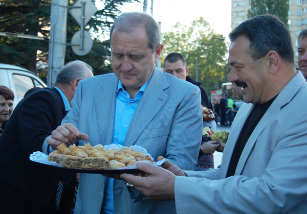 Сегодня Председатель Совета министров Крыма Анатолий Могилев в сопровождении министра аграрной политики и продовольствия АРК Валерия Кравца, министра экономического развития и торговли АРК Светланы Вербы, городского головы Симферополя Виктора Агеева посетил осеннюю сельскохозяйственную ярмарку на Московском кольце в Симферополе.