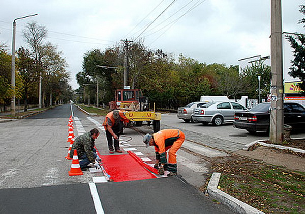 На 900-метровом участке от ул. Полупанова до ул. Московская закончен ремонт дорожного полотна, наносится специальная разметка – изображение велосипеда. Также будут установлены соответствующие дорожные знаки. Велодорожка шириной 1,8 м обустраивается на дороге с односторонним движением.