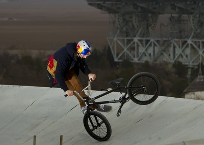 BMX-экстремал из Днепропетровска Василий Лукьяненко проделал опасные трюки на велосипеде в чашах радара Национального космического центра вблизи Евпатории. Об этом корреспонденту Крымского информационного агентства сообщил один из организаторов мероприятия крымский депутат Алексей Черняк.