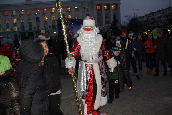 Симферопольский голова Виктор Агеев также принял участие в празднике. В своем обращении он поздравил всех жителей города с наступающим Новым годом и Рождеством, пожелал счастья и благополучия в каждом доме. «Пусть все невзгоды останутся в прошлом году», – отметил он. Также вместе с Дедом Морозом и Снегурочкой Виктор Агеев зажег главную елку, после чего все присутствующие устроили вокруг нее большой хоровод.