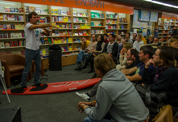 Послушать многократного победителя чемпионатов России и СНГ приехали гости из разных городов Крыма. Во время беседы Никита Замеховский рассказывал об основах серфинга, его опасностях и их преодолении, вспоминал истории из жизни. «Серфинг – это шаг к себе, шаг к себе настоящему. Море наносного не терпит. В море ты не можешь казаться кем-то, в море ты обязан быть таким, какой ты есть. И в этом ценность серфинга», – поделился Никита Замеховский.