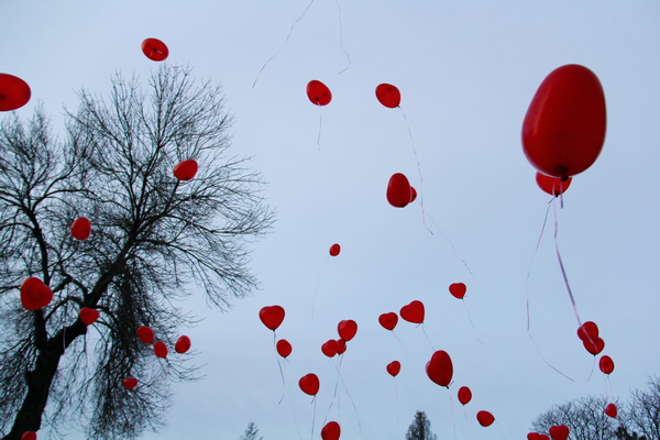 Сегодня в Симферополе в честь Дня влюбленных запустили в небо воздушные шарики с желаниями.