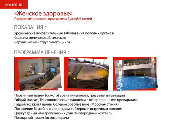 Каталог является путеводителем, в котором представлены классификаторы болезней по девяти основным направлениям. В соответствии с ними можно выбрать ту или иную здравницу или лечебное учреждение Евпатории. В каждой программе представлены показания для лечения, продолжительность курса, необходимые обследования, ожидаемый эффект и стоимость.