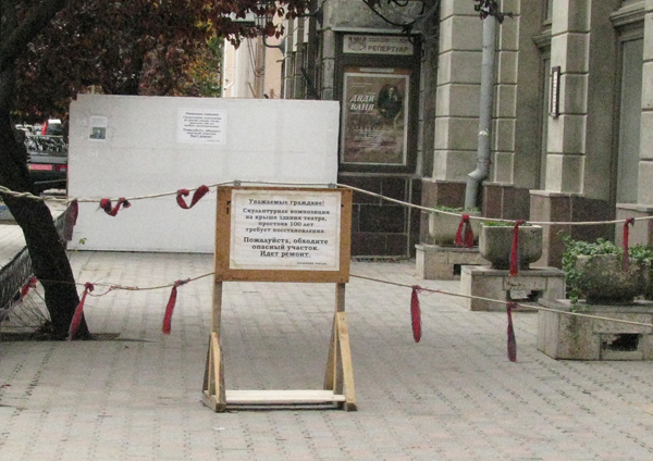 «К нам обратилось руководство театра с просьбой помочь в ситуации, которая сложилась со скульптурной композицией на театре. Мы направили туда наших специалистов, они провели обследование и констатировали, что скульптуры, действительно, находятся в аварийном состоянии и есть угроза обрушения. Как первоочередные меры, мы оградили территорию, чтобы обезопасить прохожих, а также была заказана за счет Рескомитета проектная документация на проведение первоочередных укрепительных мероприятий», – пояснила председатель.