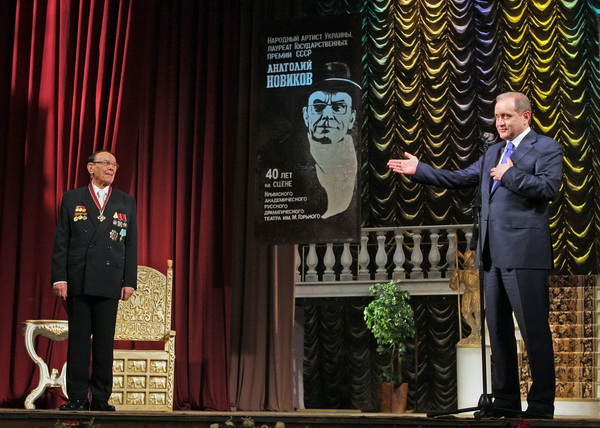 Художественного руководителя театра поздравил с 40-летием творческой деятельности на крымской сцене Председатель Совмина Анатолий Могилев. «Руководить театральным коллективом в течение 40 лет – это уникальный случай, достойный уважения. Вы внесли большой вклад в становление и развитие уникального творческого коллектива», – отметил крымский премьер. Он вручил Анатолию Новикову путевку в один из крымских санаториев.
