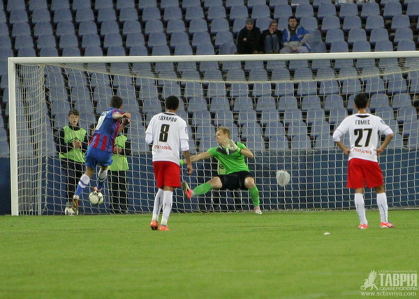 Оба гола были забиты во втором тайме, который прошел в острой и напряженной борьбе. На 82-минуте за нарушение в штрафной арбитр матча указал пенальти в сторону ворот симферопольцев, который уверенно реализовал киевский полузащитник Андрей Богданов. Сравнять счет крымчанам удалось на последних секундах матча мастерским ударом со стандарта. Автором гола стал полузащитник Махач Гаджиев.