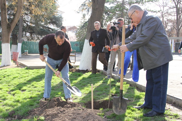 В рамках акции парламентарии высадили более 30 молодых деревьев декоративной акации, а также благоустроили прилегающую территорию – установили ограду вокруг деревьев и разбили клубы для цветов.