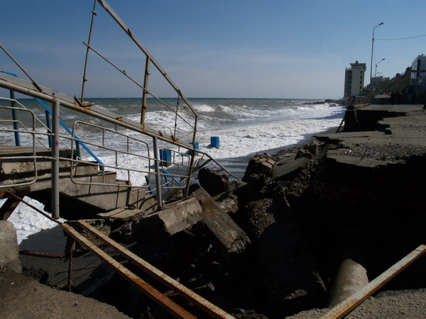 В Алуште в районе Профессорского уголка в результате сильного шторма произошло разрушение берегоукрепительной стены и части дорожного полотна. Об этом сообщила пресс-служба Главного управления ГСЧС в АРК.