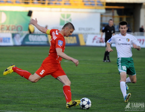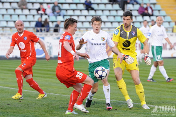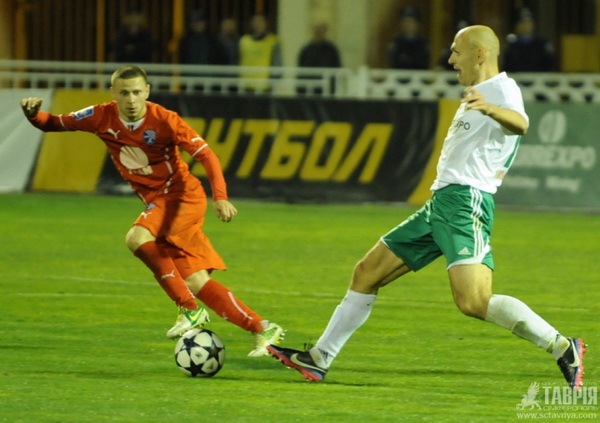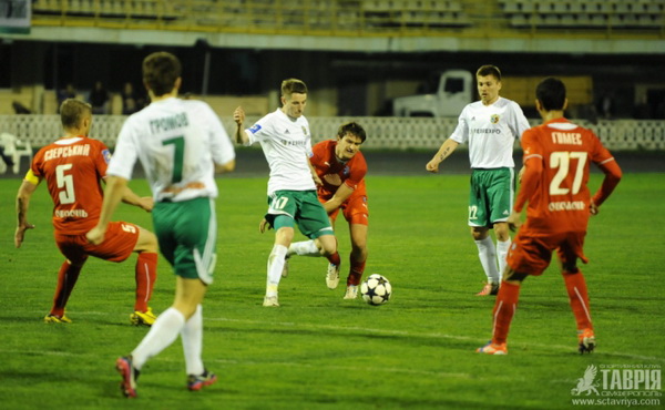 Первыми счет в поединке открыли полтавчане. На 29-й минуте матча защитник симферопольцев Олег Гуменюк сыграл рукой в собственной штрафной, за что судья назначил пенальти. Спустя три минуты за подобное нарушение пенальти был назначен уже в ворота «Ворсклы». Его мастерским ударом без шансов для вратаря исполнил один из лидеров таврийцев Сергей Назаренко.