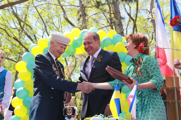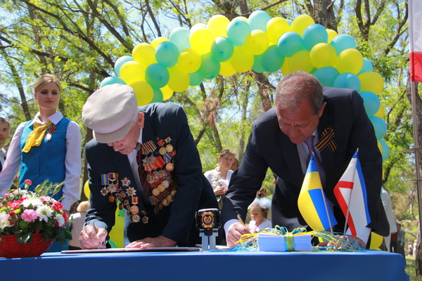 В церемонии спецгашения приняли участие Председатель Совета министров АРК Анатолий Могилев и ветеран войны, освобождавший Симферополь в 1944 году, Иван Робак.