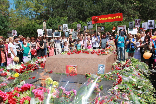 Участники акции, держа в руках портреты своих отцов, дедов и прадедов – защитников Родины, сражавшихся в Великой Отечественной войне, но ушедших из жизни, – прошли с общей колонной по центру города и возложили цветы к «Вечному огню» в парке имени Юрия Гагарина.