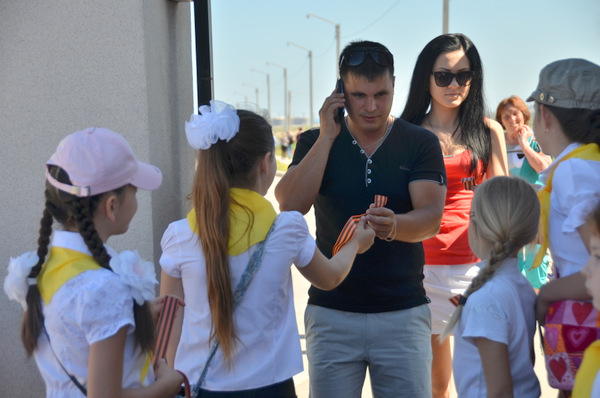 Школьники раздавали символ Победы всем гостям, встречая их на входе. Акция продолжалась в течение несколько часов. За это время разошлись более 5 тыс. ленточек с надписями «35 Береговая батарея» и «Севастополь 1783-2013».
