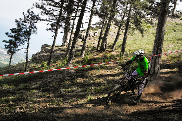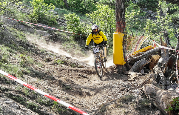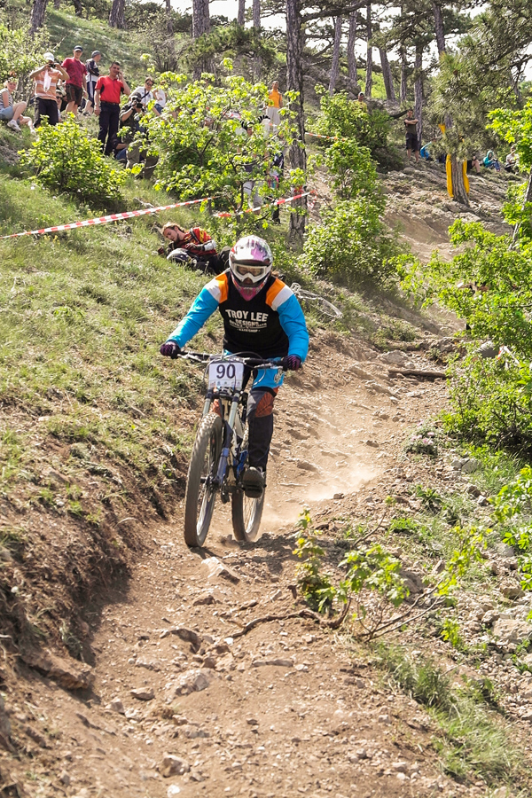 На Мисхорской тропе в районе горы Ай-Петри 12 мая прошел финал первых на территории СНГ соревнований по скоростному спуску (горный велосипед).