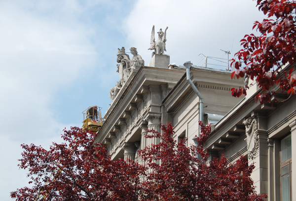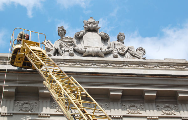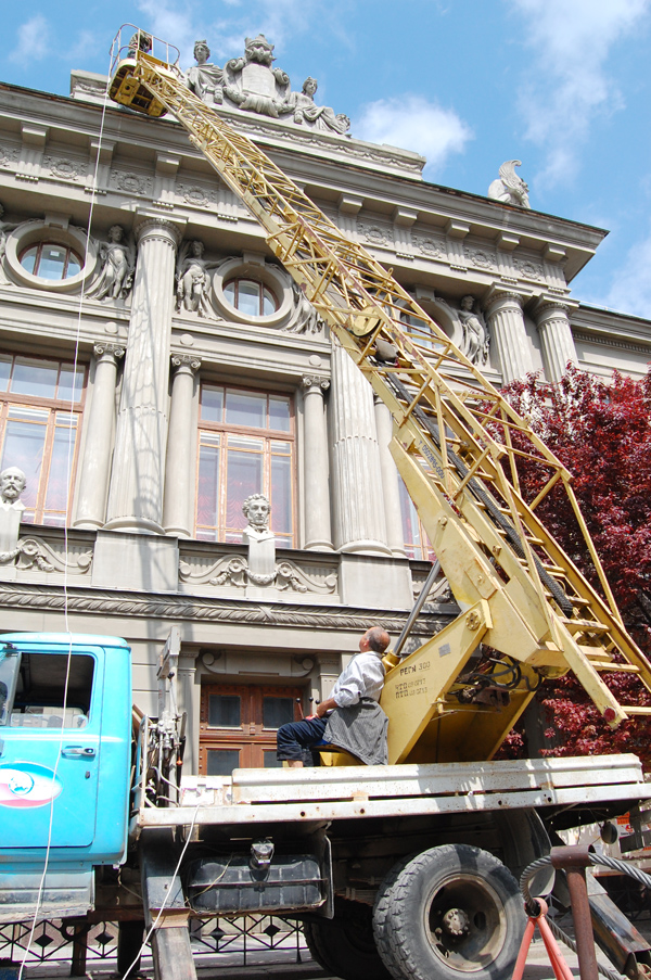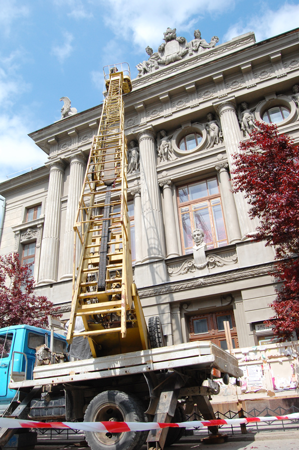 В Симферополе на здании Крымского академического русского драматического театра им. Горького начали реконструкцию скульптурного ансамбля.