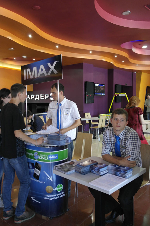 В просторном фойе на первом этаже оборудовали поп-корн-кафе, а также зал ожидания с бесплатным WI–FI. Главная особенность кинокомплекса — зал IMAX, экран в котором в два раза больше, чем в обычных кинотеатрах. Для кинопоказов используются передовые технологии и оборудование, которые позволяют демонстрировать цифровое кино как в формате 2D, так и в 3D. Размер изображения на экране выходит за границы видимого зрителю пространства, создавая реалистичный 3D-эффект. Звуковая технология IMAX в 10 раз мощнее обычного звукового оборудования.
