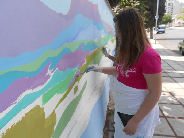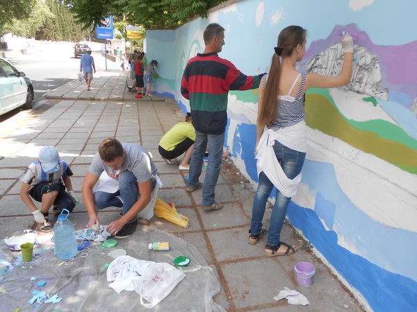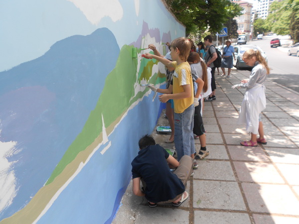 Воспитанники детской художественной школы Алушты завершили создание композиции на стене учебно-спортивного центра Спартак».
