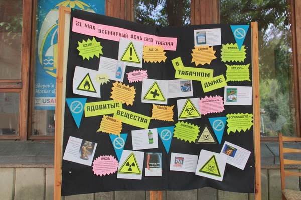 У входа в консультацию был установлен «музей табака», в котором представлены вредные компоненты, содержащиеся в табачном дыме. Беременным раздавали листовки о вреде курения, в том числе пассивного, для них была проведена тематическая лекция. «Организм беременных наиболее подвержен действию табачного дыма. Мы рады тому, что многие мамы отказываются от курения во время беременности, и призываем их не начинать курить после родов, влиять на своих родственников и знакомых, чтоб они не курили, находясь рядом», – сообщила корреспонденту Крымского информационного агентства председатель коалиции «Крым без табачного дыма» Инна Мирошниченко.