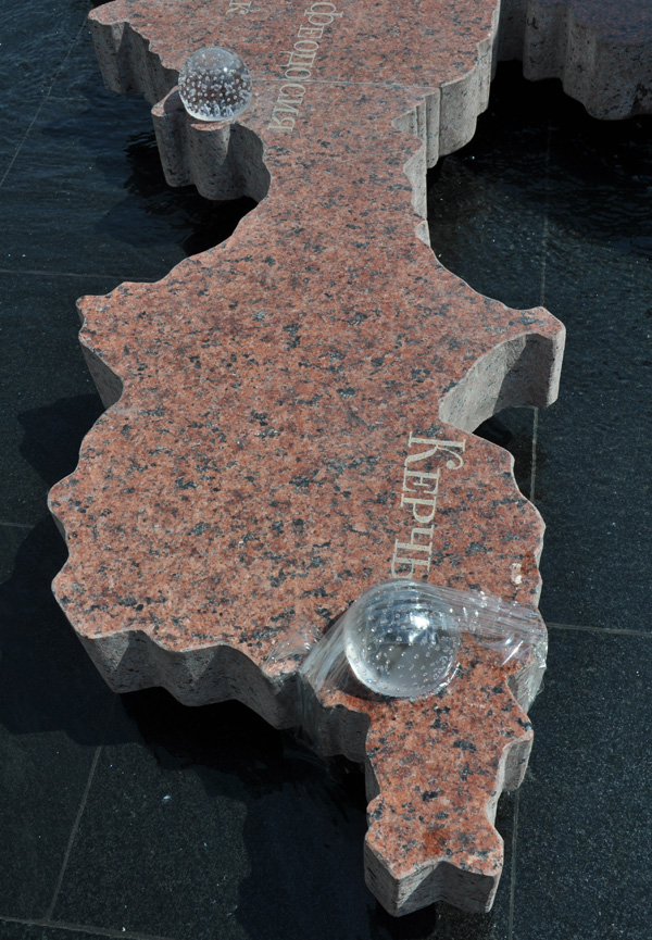 Стеклянные шарики, обозначающие города Крыма на фонтане в сквере Республики в Симферополе, возвращены на место и обмотаны скотчем. Видимо, это сделано с целью укрепления их основания к фонтану, так как в первый же день несколько таких шаров пропали.