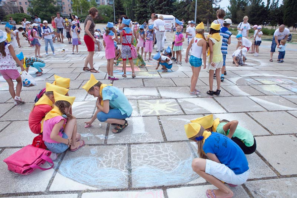 По словам генерального директора центра Татьяны Зениной, в акции приняли участие 230 детей. Они рисовали мелом на асфальте свои мечты о городе. «Мы стремимся проводить праздники на площади не только для взрослых, но и для детей. Это первый в Севастополе детский флешмоб для желающих проявить свой талант художника. Творчество каждого участника мы отметили памятным дипломом центра», – поделилась Татьяна Зенина.