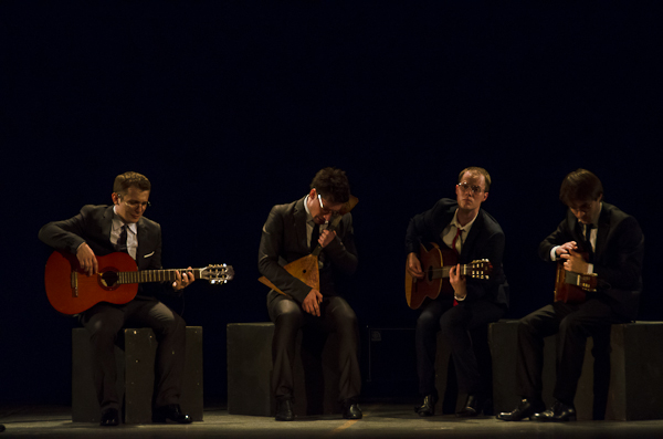 Одна из самых многочисленных команд – Мастерская театральных ремесел под руководством режиссера Андрея Щукина. Его воспитанники – выпускники Российского университета театрального искусства представили постановку «Quasi una fantasia». Артисты пели на грузинском, английском, французском, итальянском, русском языках, играли на гитарах, саксофоне, гармони, барабанах и деревянных ложках.