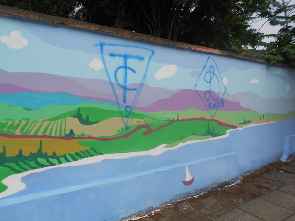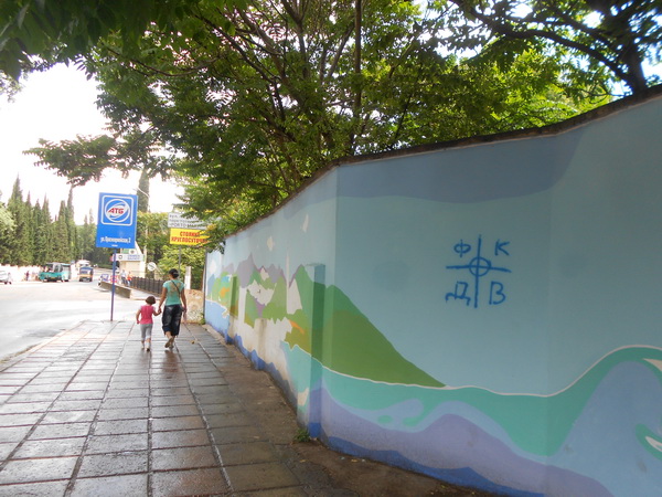 В Алуште хулиганы испортили стену спортивного центра «Спартак», на которую юные художники нанесли рисунок, посвященный городу.