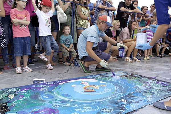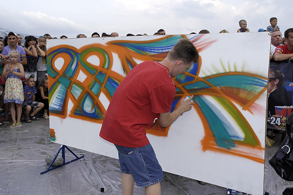 В ходе фестиваля шесть художников на специально сооруженных планшетах в течение двух часов создавали картины на ялтинскую тематику в стиле граффити. Оценивали работы участников члены компетентного жюри, которые по завершении конкурса назвали победителя – им стала единственная среди участников девушка.