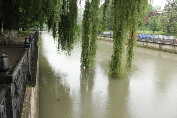 Из-за обильных дождей, которые уже около недели идут в Крыму, воды в Салгире стало значительно больше, растения и деревья погрузились в воду.