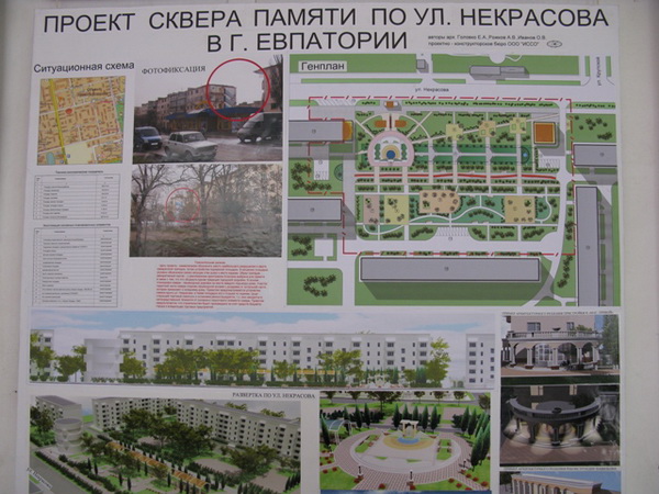 Submitted by admin on Sat, 07/06/2013 - 03:09 25.03.09 – Выставка проектов Сквера Памяти в г.Евпатории по улице Некрасова, 67. Место проведения: г. Евпатория.