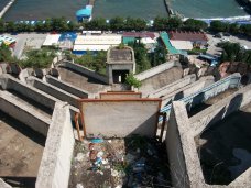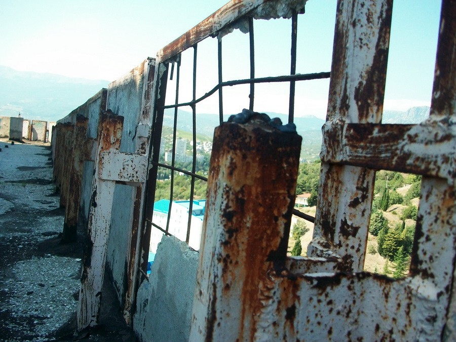 Поднимаемся выше, и еще выше, пока не достигаем последнего этажа. Он представляет из себя площадку, по которой должны были прогуливаться отдыхающие пансионата.