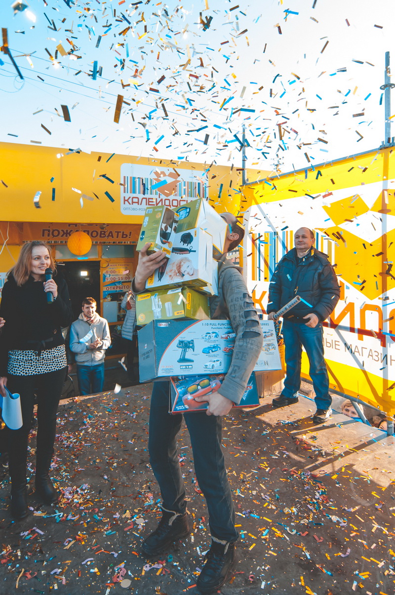 И наконец-то женскую компанию разбавил молодой человек — высокий, статный с длинными руками. Ему зрители предсказывали лучшие результаты. Так оно и оказалось. Он вынес несколько радиоуправляемых игрушечных машинок (как признался, для сына и для себя), а также много мелкой бытовой техники – для жены и, наверное, для тещи. Всего на сумму 1170 грн. В общем, призов, подарков и счастья магазин «Калейдоскоп» раздал в тот день невероятное количество. Наверняка, акцию «Унеси, сколько сможешь» симферопольцы вспоминать будут еще долго. В общем, «Калейдоскоп» отметил на славу свой день рождения. Жаль, что он у них только раз в году, однако организаторы пообещали, что акция «Унеси, сколько сможешь» еще обязательно повторится.