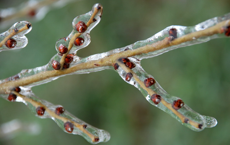 Деревья, кустарники, провода и многое другое на улицах Евпатории покрылось льдом.