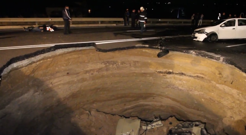 В провал упал автомобиль «Жигули», в котором были восемь человек. Погибли шесть человек, в том числе двое детей. Госпитализированы годовалый мальчик и девочка 12 лет.