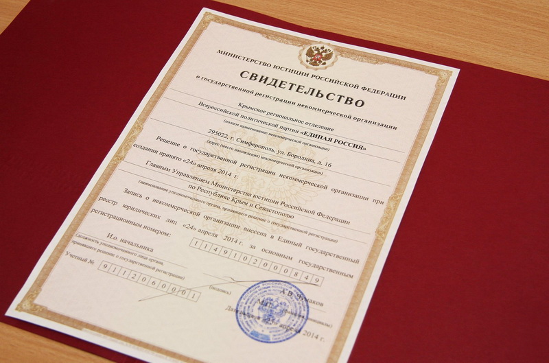 Крымское отделение «Единой России» зарегистрировалось в Минюсте