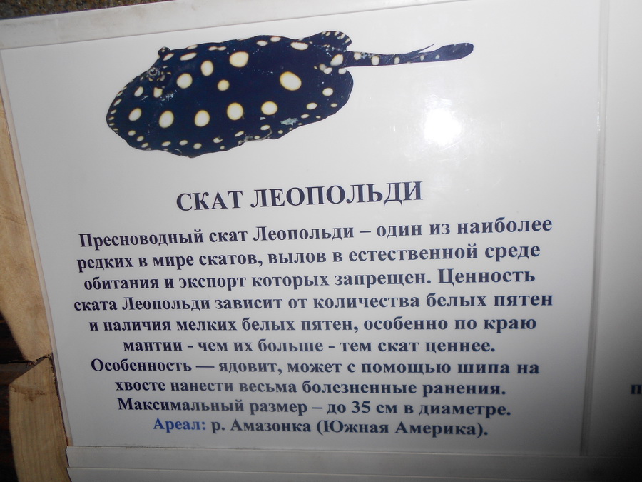 По его словам, скаты чувствуют себя хорошо, хотя живут в неволе. «У нас появились новые обитатели – скаты Леопольди. Уникален этот скат тем, что живет только в одном притоке Амазонки, там, где вода очень чистая. Всегда считалось, что невозможно создать в неволе им условия для нормальной жизни, очистить соответствующим образом воду и создать другие условия», – рассказал директор аквариума.