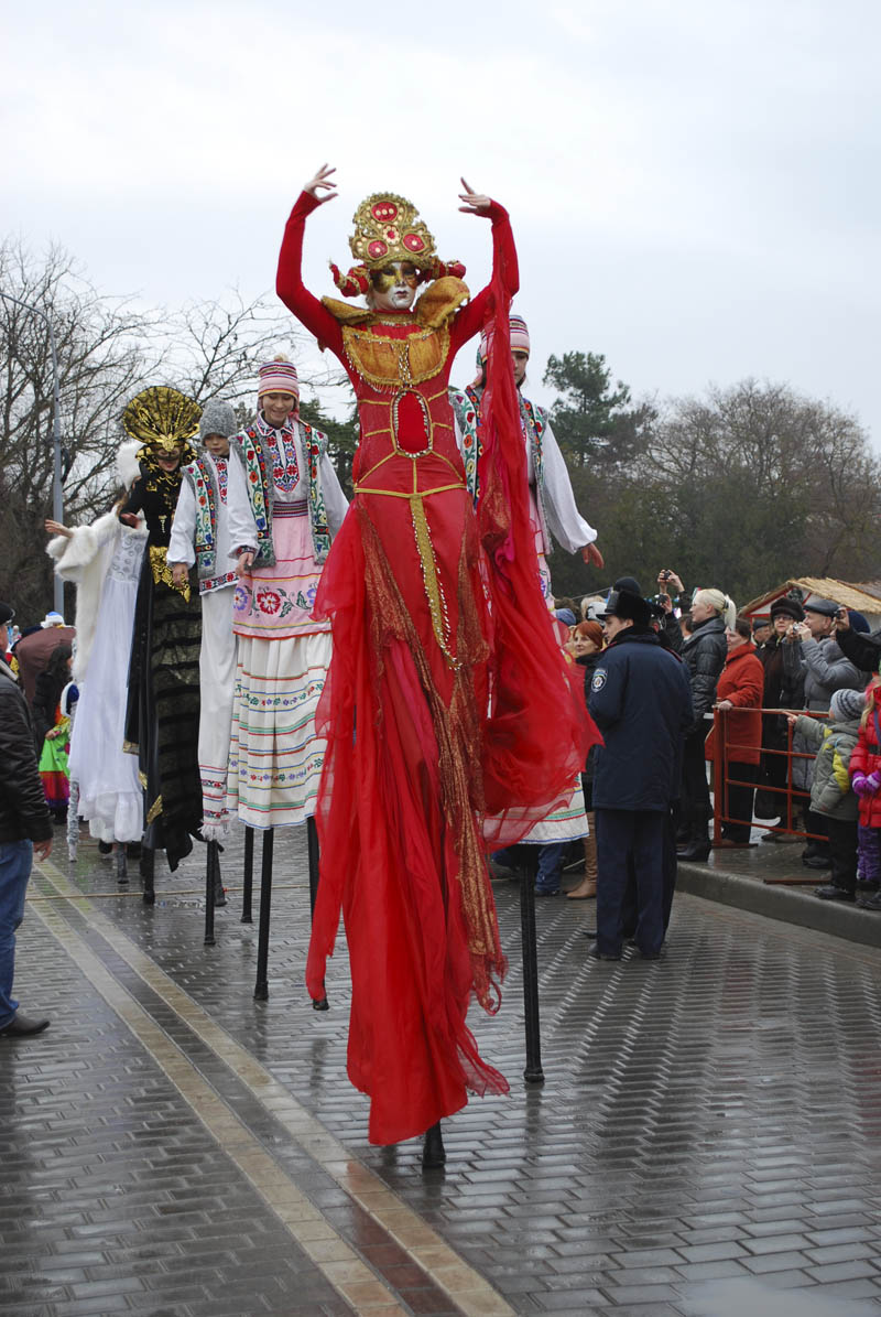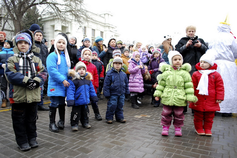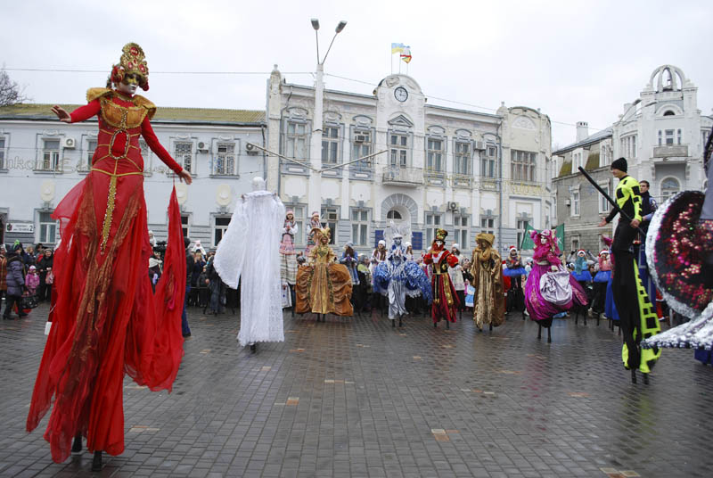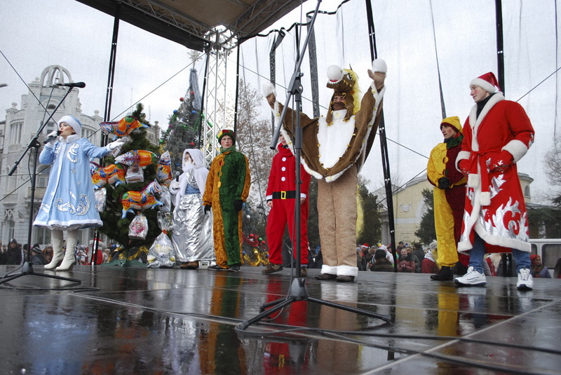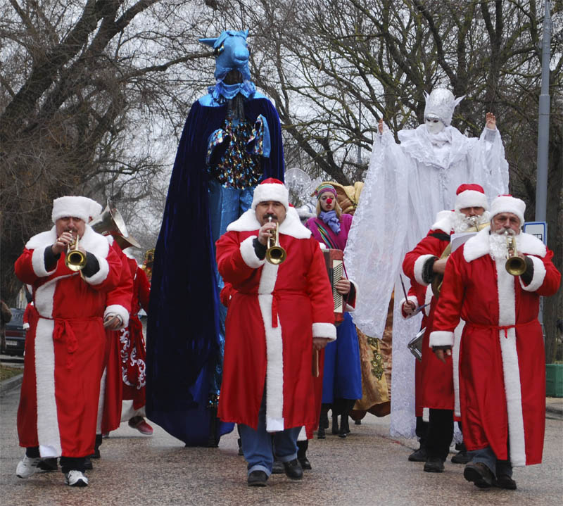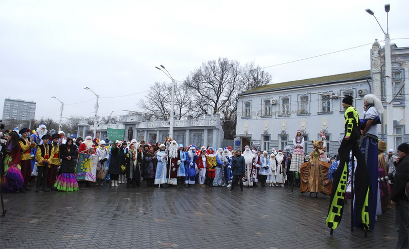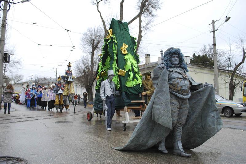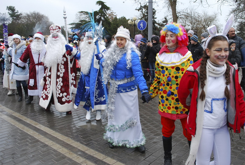 Праздник начался с карнавального шествия Дедов Морозов, Снегурочек и других сказочных новогодних персонажей по улицам города. В нем приняли участие более 200 Дедов Морозов и Снегурочек из Евпатории и других городов и районов Крыма. Новогодний хоровод сказочных персонажей возглавила Синяя лошадь на ходулях – символ следующего года.
