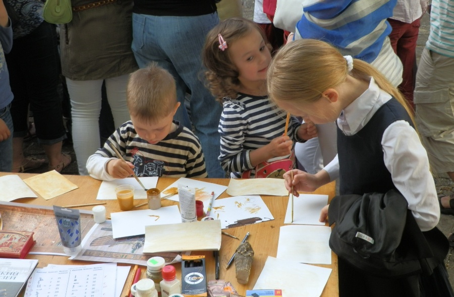 Все желающие могли сделать свой папирус из современных материалов, нарисовать на нем иероглифы и написать свое имя. В создании папирусов участвовали не только дети, но и взрослые. Во время мастер-класса были организованы конкурсы на тему древнеегипетской истории.