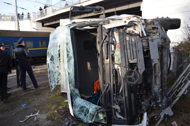 ДТП, В Севастополе грузовик упал с железнодорожного моста