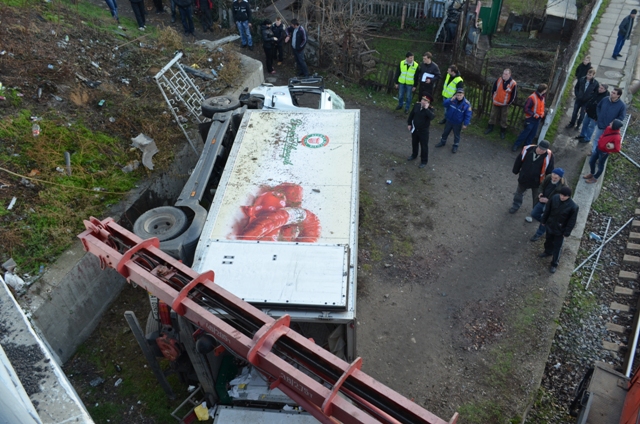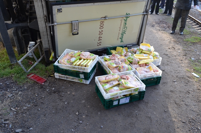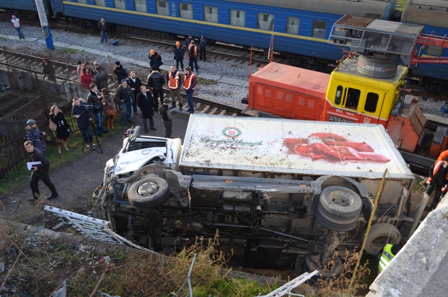 По предварительным данным, перевозивший полтонны окороков грузовик упал с железнодорожного моста, двигаясь со спуска Котовского в сторону улицы Ревякина. Автомобиль упал слева от путей, не повредив их и не ограничив движение поездов.
